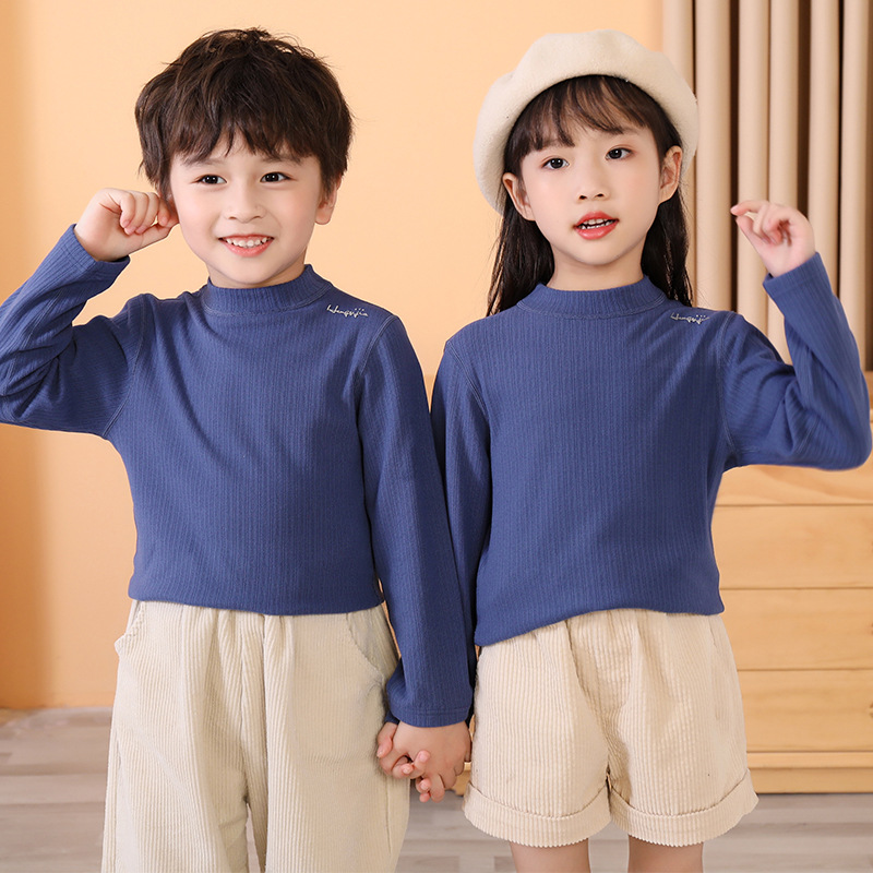 秋冬の子供の半高襟の底のシャツの両面の絨毛の男女の子供とベルベットの厚い保温の上着の中で長袖のtシャツを襟ます。