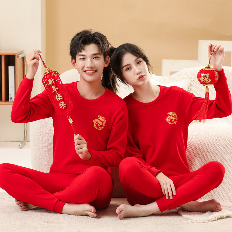 子供本命年大赤色下着保温セット男児秋衣秋ズボン女児パジャマ冬カップル
