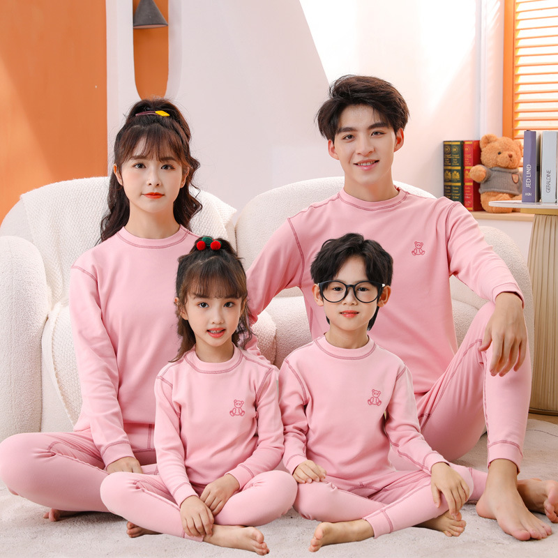 2024春秋秋の親子無骨家服2点セットの新型子供純色ジャカード無骨保温下着カバー