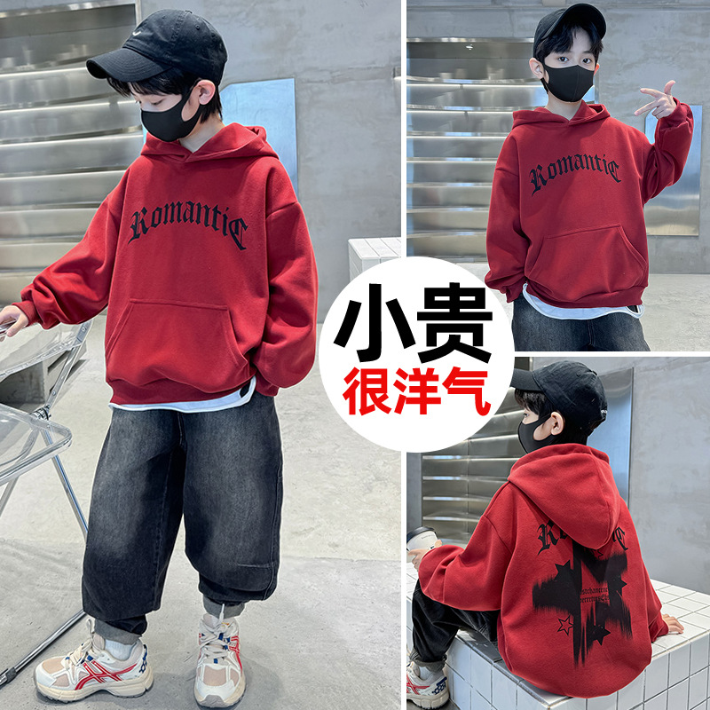 男の子秋スーツ2025新作中大型子供春秋服おしゃれ男の子スポーツスウェットシャツ2点セット流行