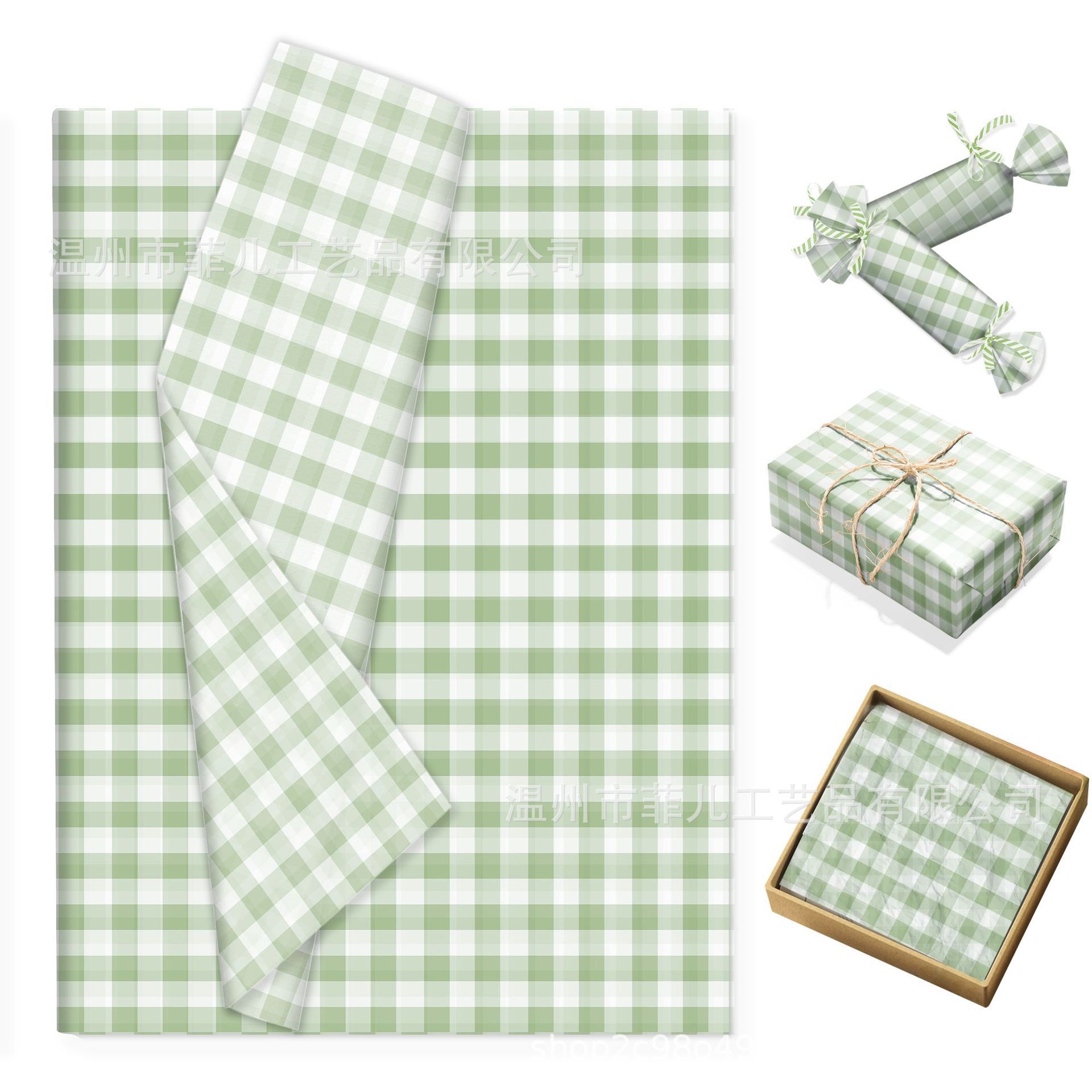 1688WX005 グリーンチェック柄シドニー紙 17 グラムフラワーギフトキャンディー防湿包装紙グリーンチェック柄装飾ティッシュペーパー