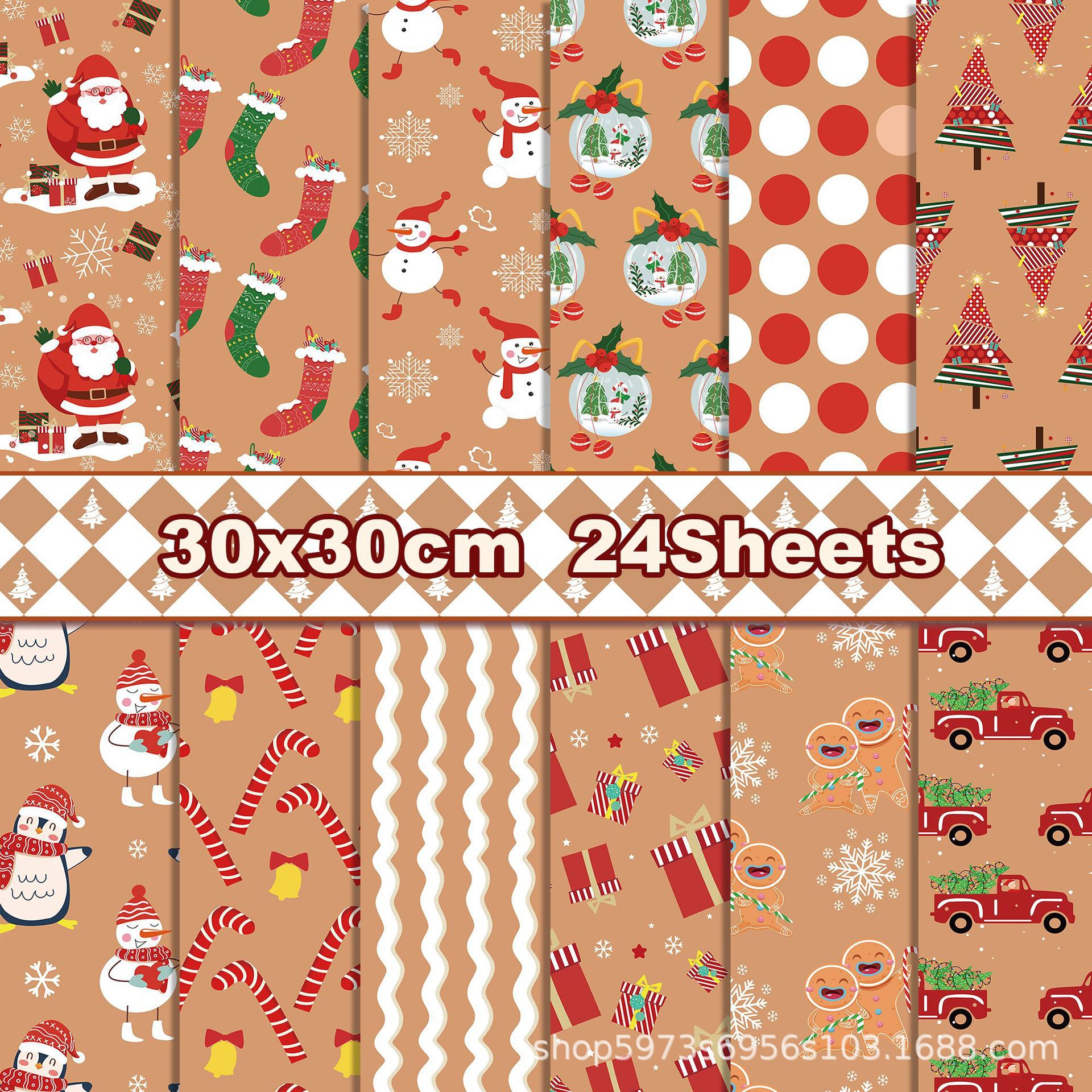 WW037牛革色クリスマスクリスマスツリー手帳素材紙クリップカード作成背景紙