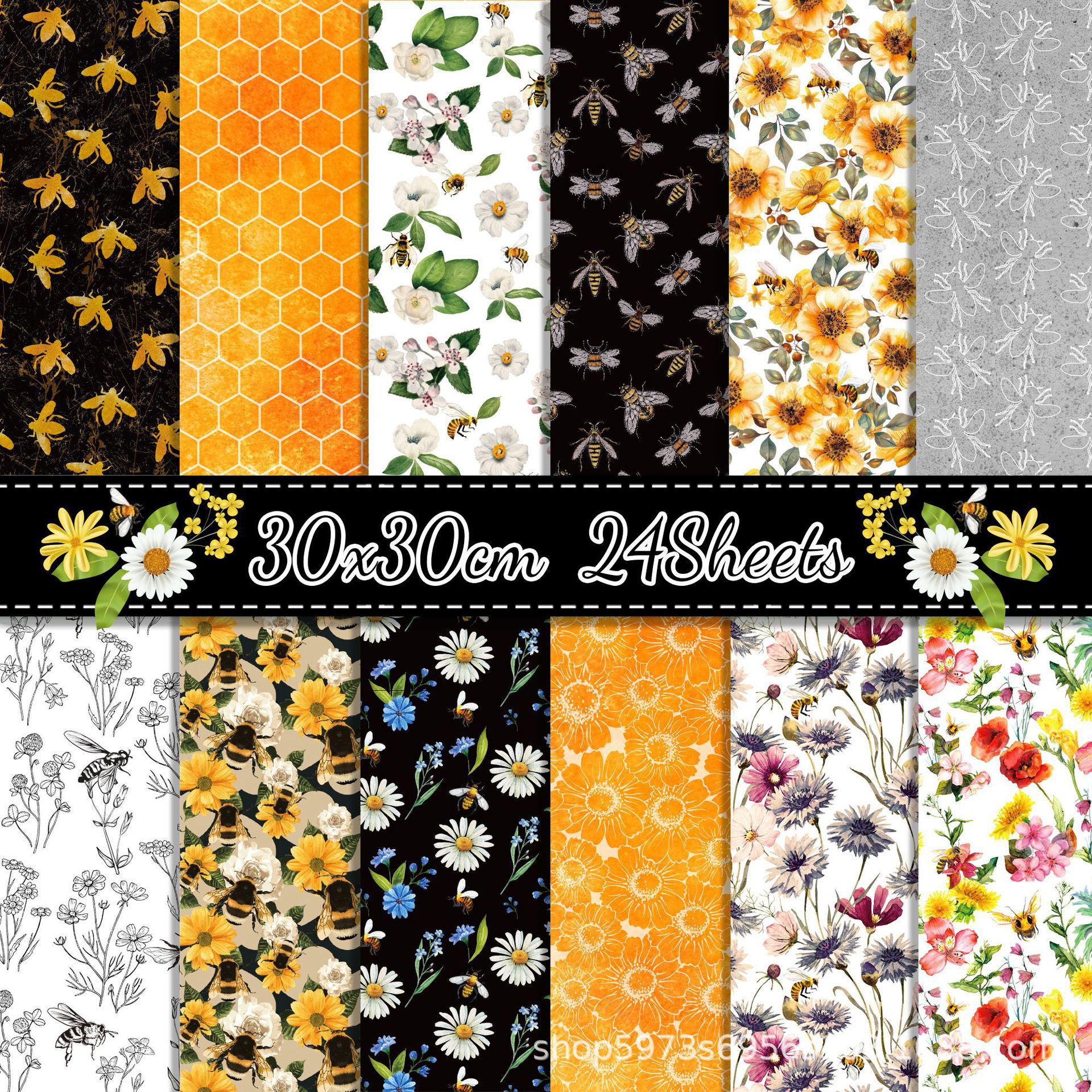 WW112昆虫ミツバチ春花菊帳素材紙クリップカード作成背景紙