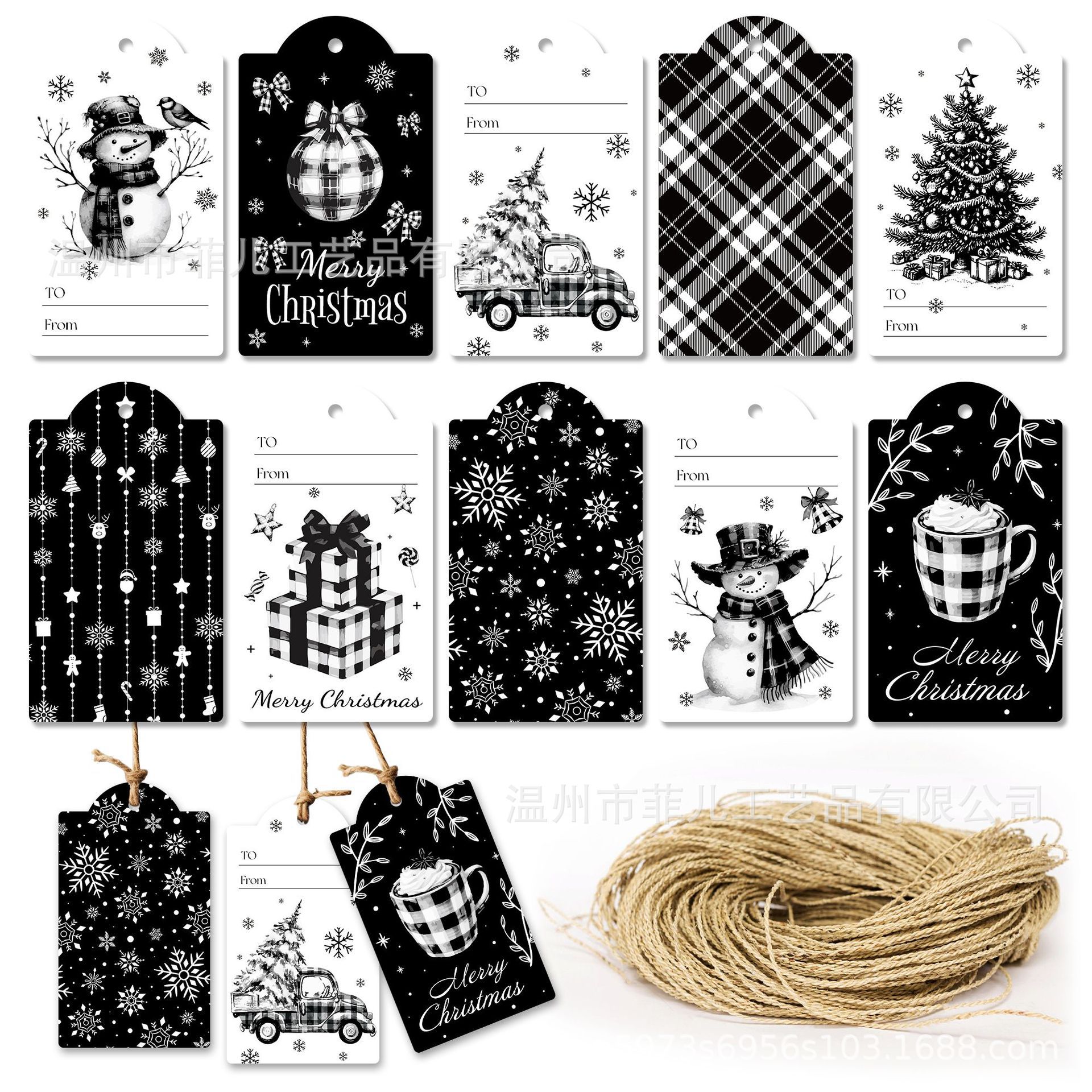DP034 ブラッククリスマスギフトカード雪だるまクリスマスツリー装飾包装タグホリデーパーティー包装カード