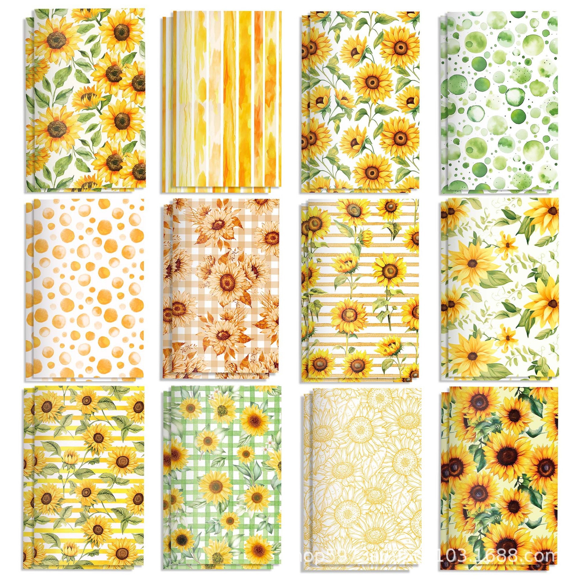 JS009ひまわりのポケットのメモ帳油絵ひまわりの車の線の本の横の線の本の学生の日記のノート