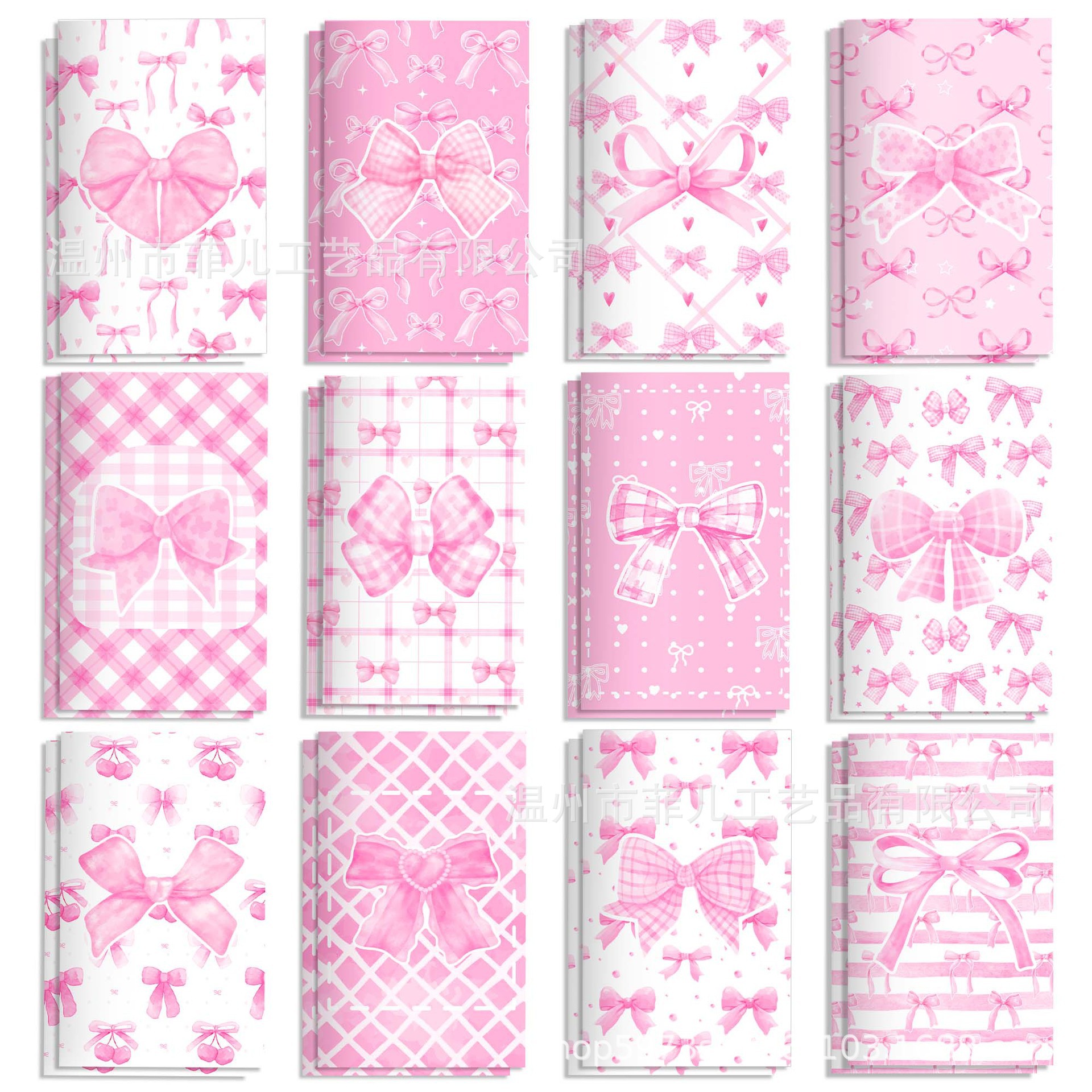 JS041 ピンクのリボンポケットメモ帳水平線ステッチブックガールズピンクパーティーパーティーノートブック