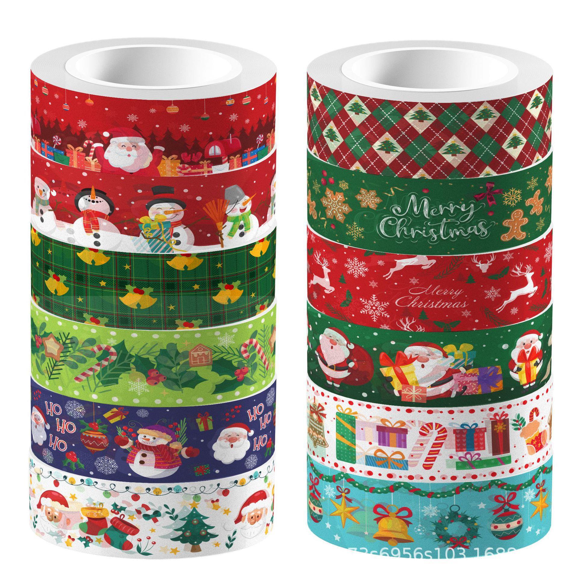 Zh 17クリスマスサンタクロース透明リールステッカーと紙テープdiy手帳素材入り