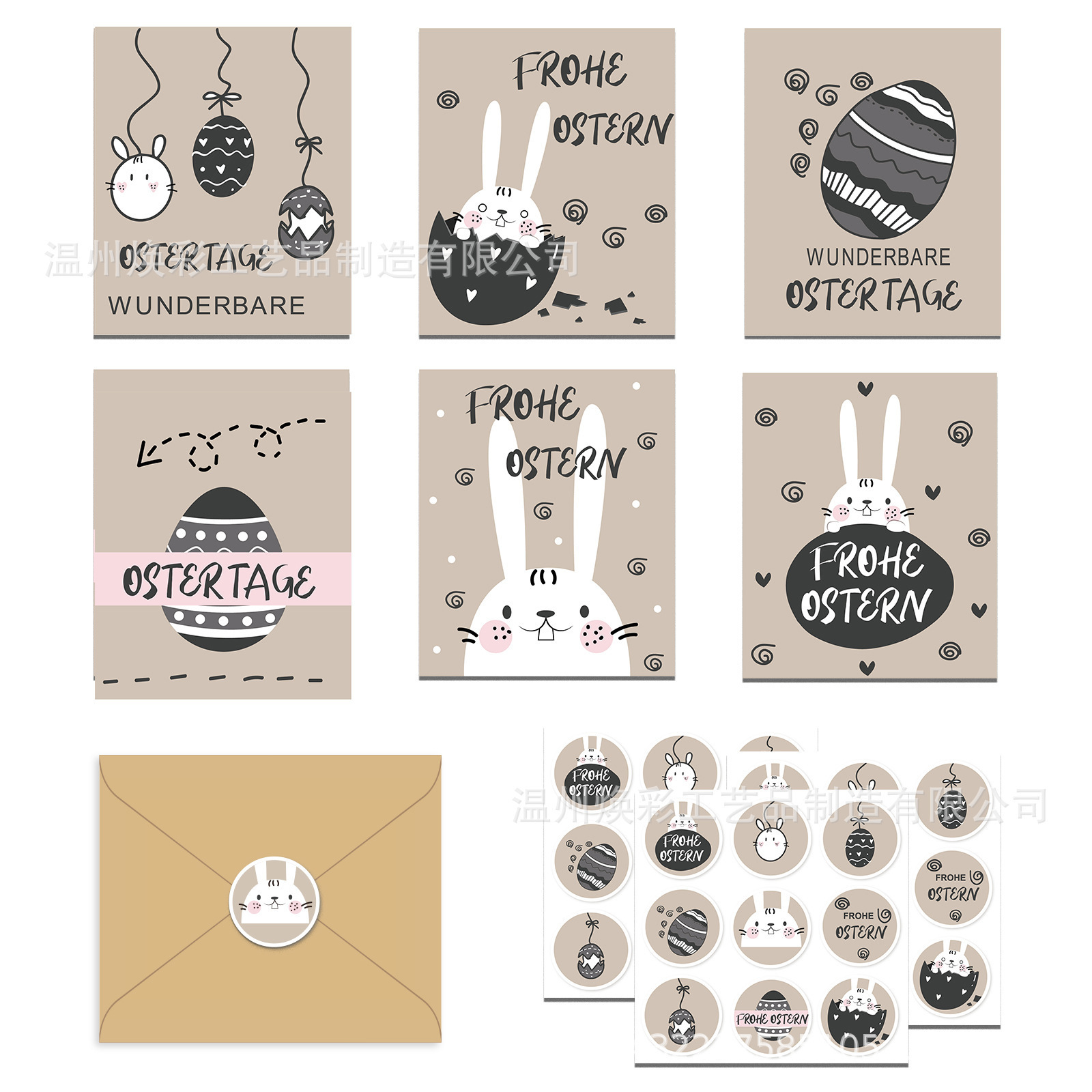 HK020ドイツ語イースターグレー系カード祝福グリーティングカード子供用アニメシール封筒セット