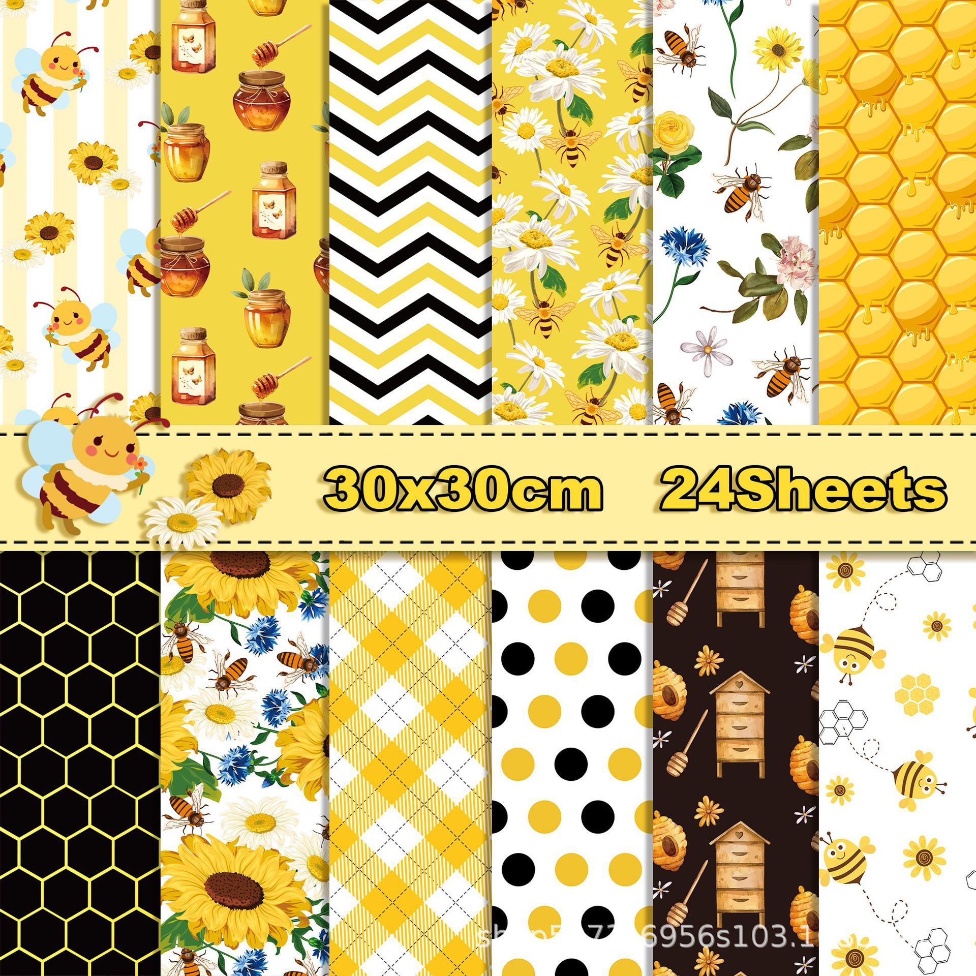 WW051ミツバチ蜂蜜花春ひまわり手帳素材紙クリップカード作成背景紙