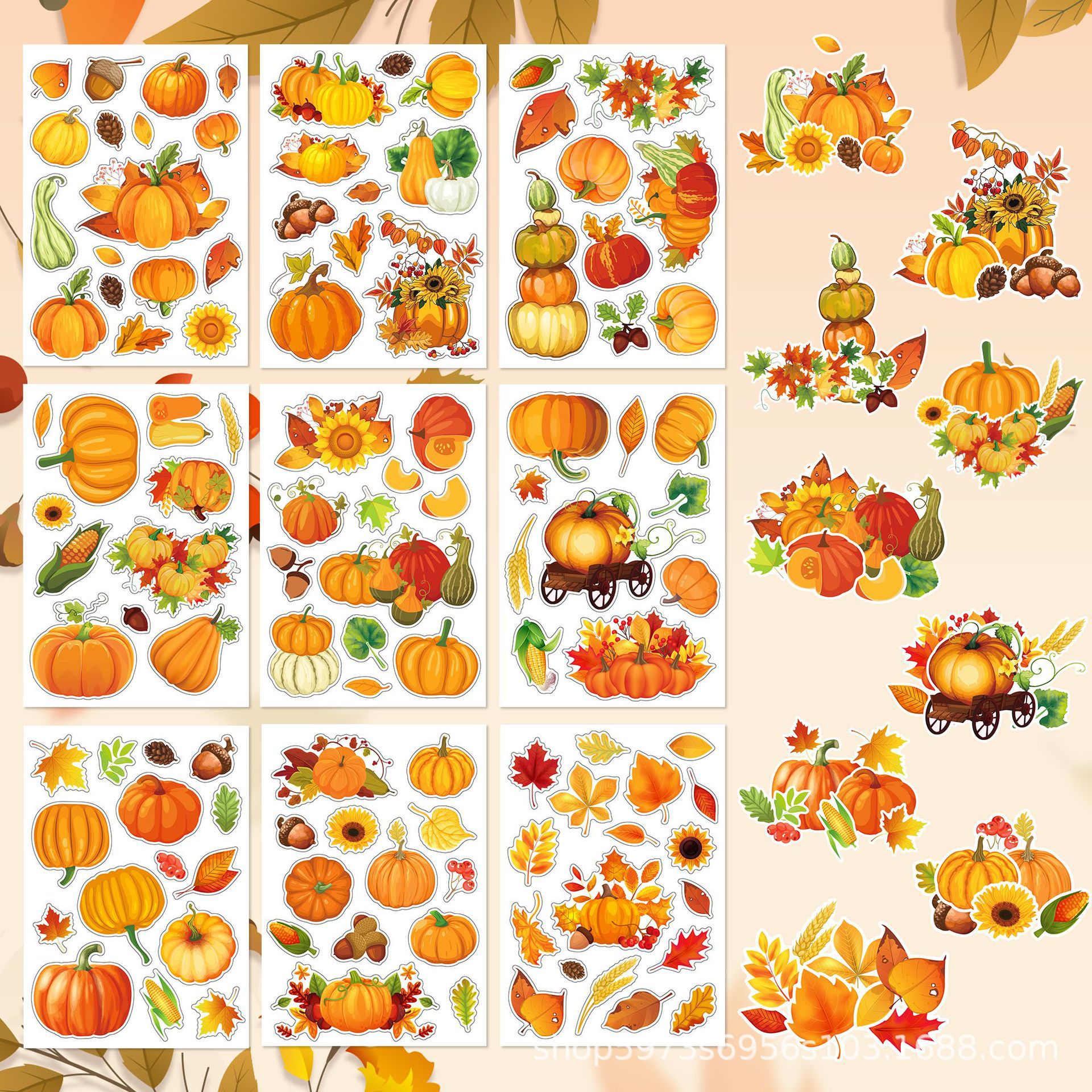 Et010国境を越えた秋のカボチャカエデ感謝祭diyシールクリスマスパズルシール漫画シール