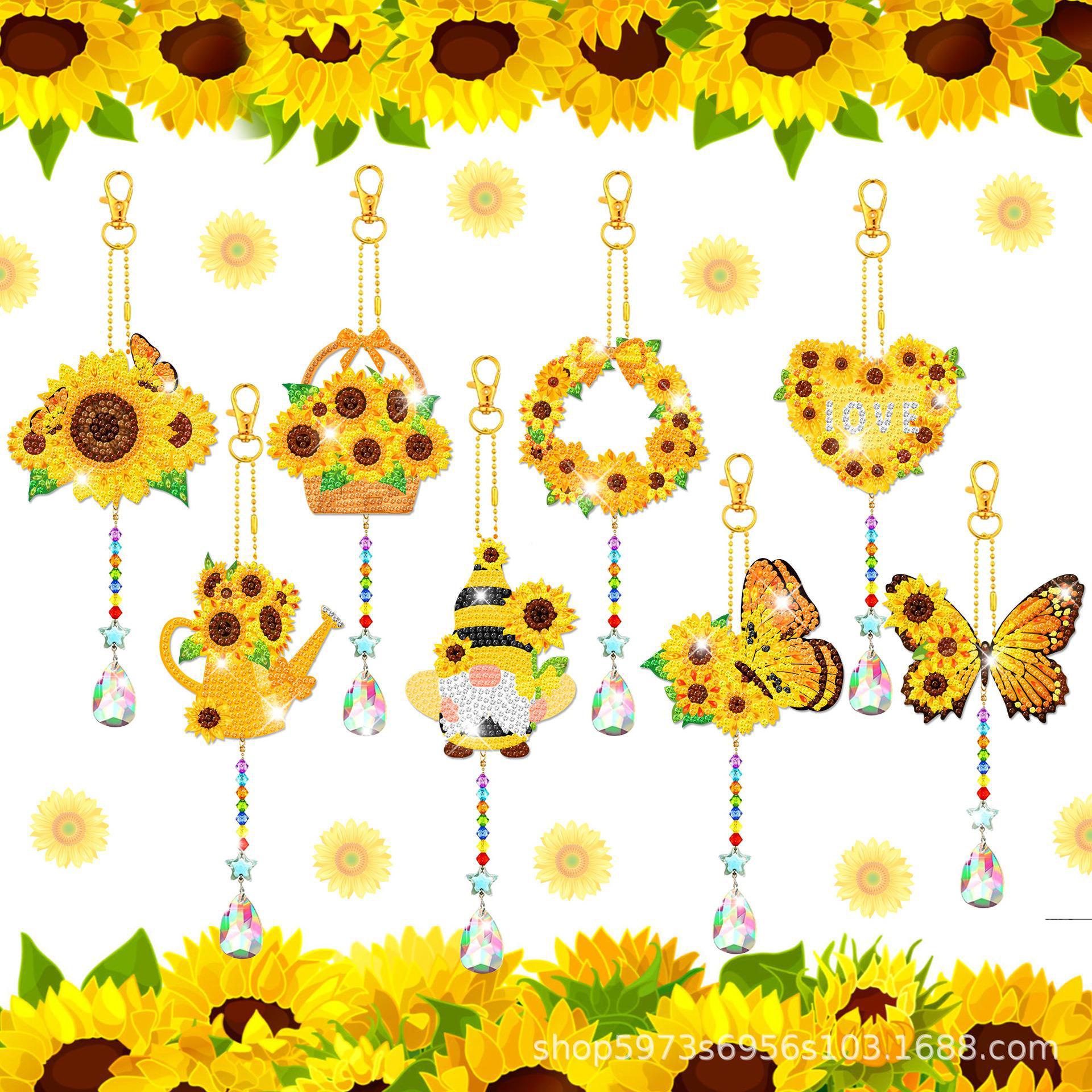 Ta001ひまわり太陽花蝶ペンダントdiyダイヤモンドステッカーキーホルダーペンダントダイヤモンドガーデンペンダント