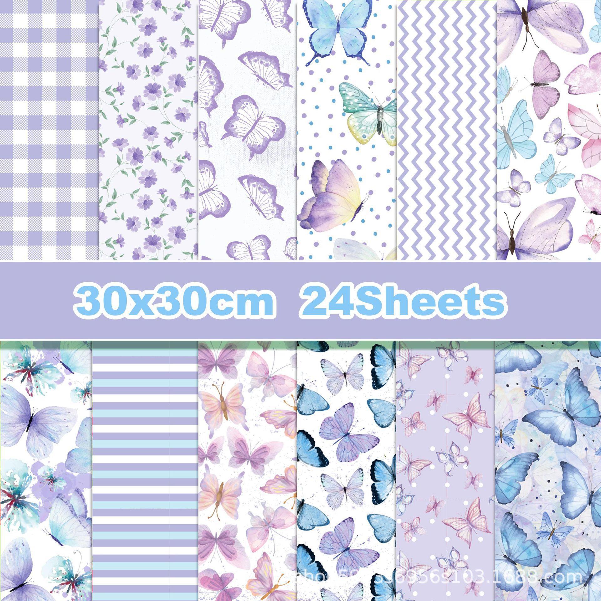Ww015クロスボーダー紫系水彩蝶手帳素材紙クリップカード作成背景紙