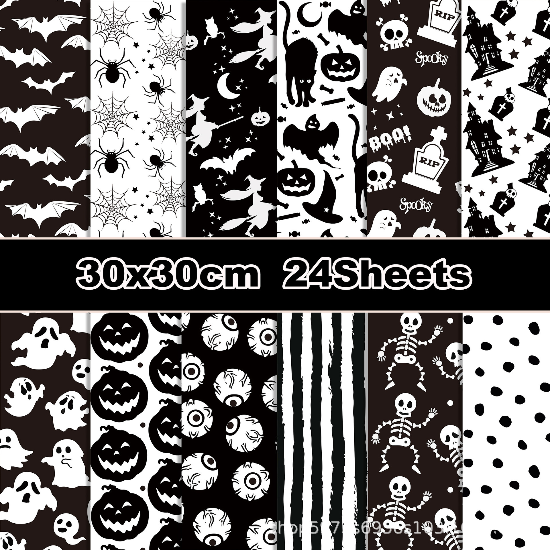 Ww013クロスボーダー白黒ハロウィーンコウモリ手帳素材紙クリップカード作成背景紙