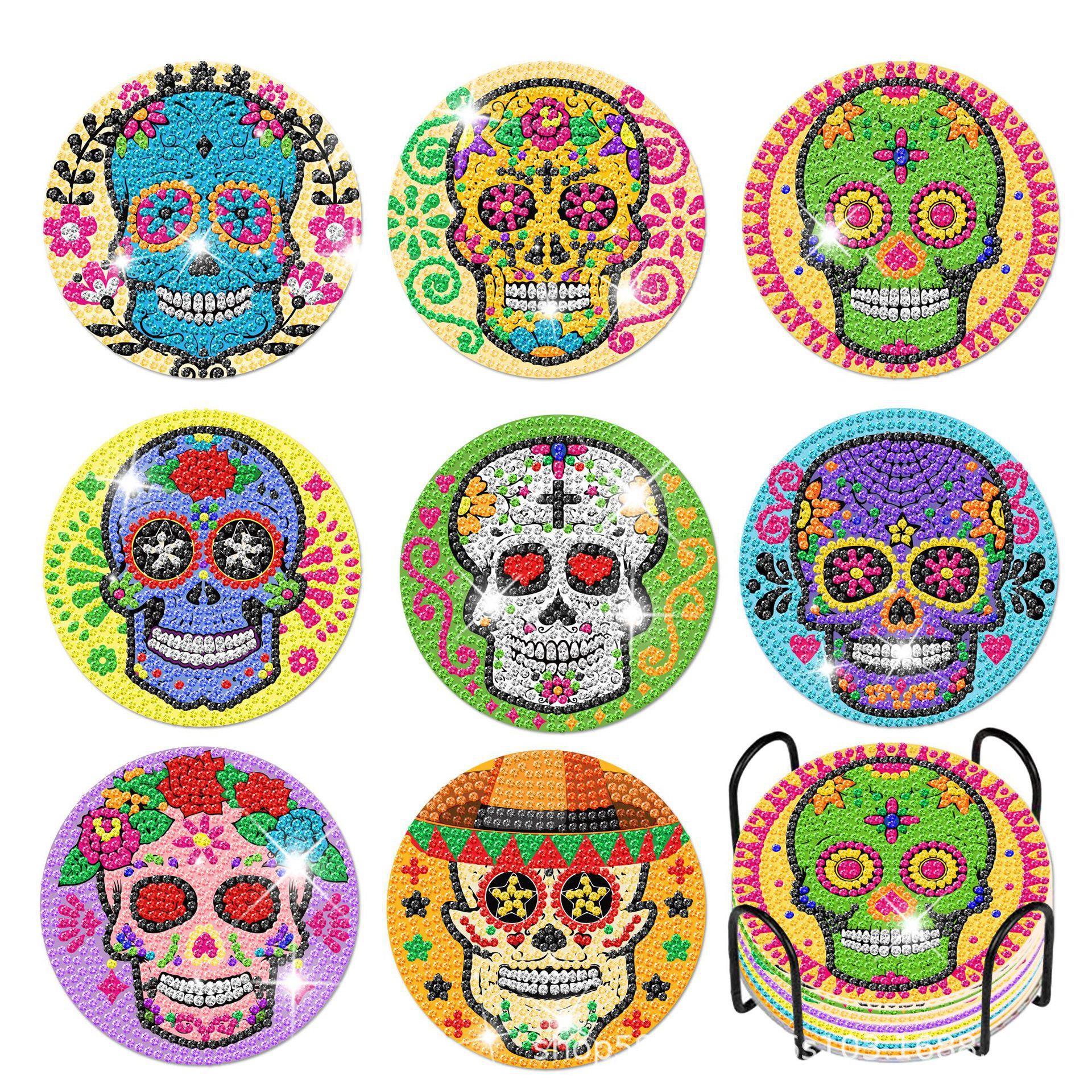 Th011メキシコ亡霊節スカルアクリルコルク底食マットダイヤモンド貼り絵diy手作りダイヤモンド