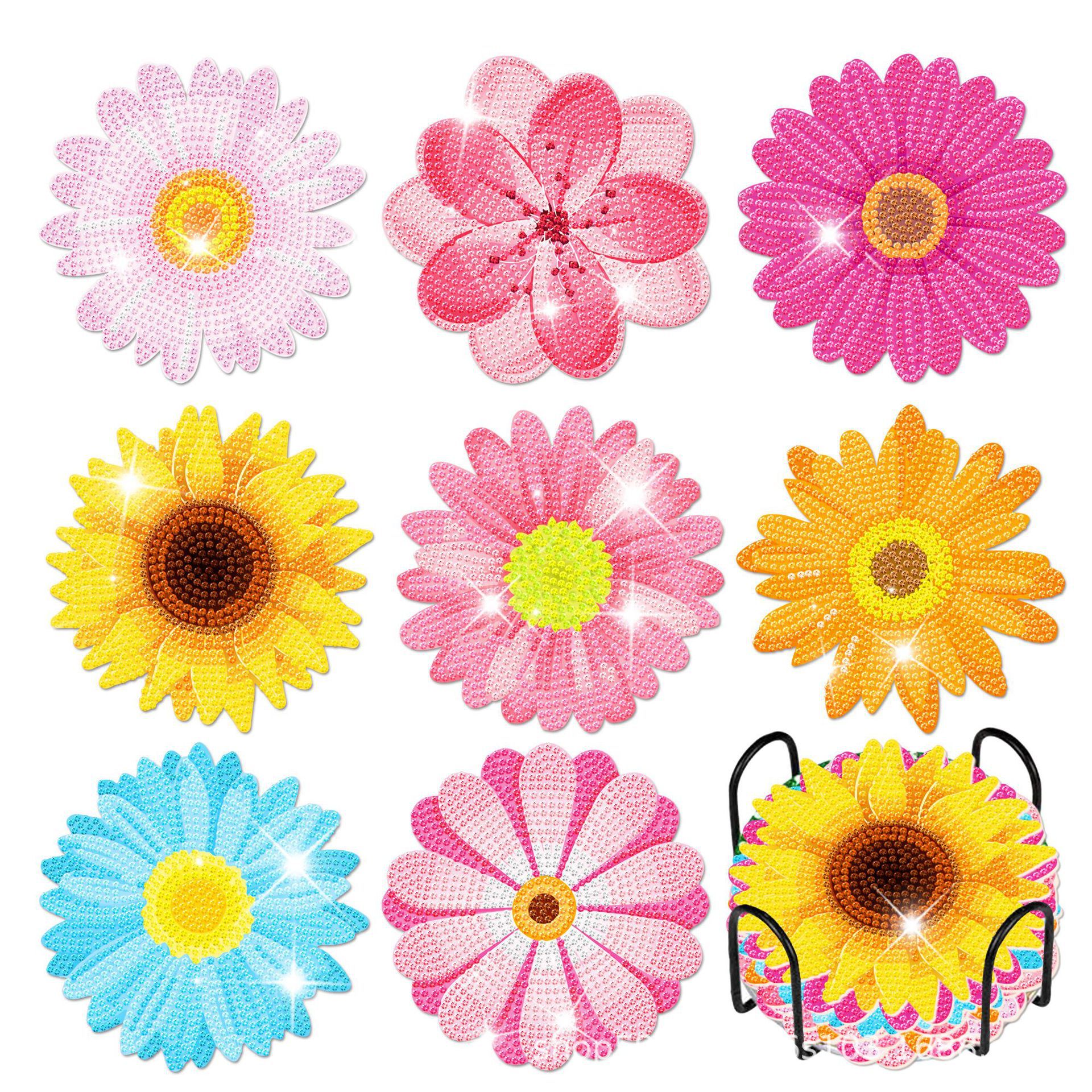 Th010ヒマワリの花のダイヤモンドはアクリルのコルクの底の食事のマットのダイヤモンドを描いてdiyの手作りのダイヤモンドを貼ります。
