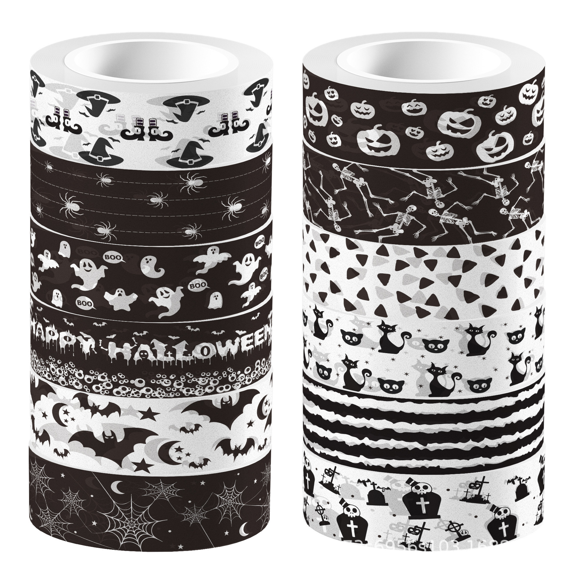 Zh011クロスボーダー白黒ハロウィーンコウモリ透明リールステッカーと紙テープdiy手帳素材装飾