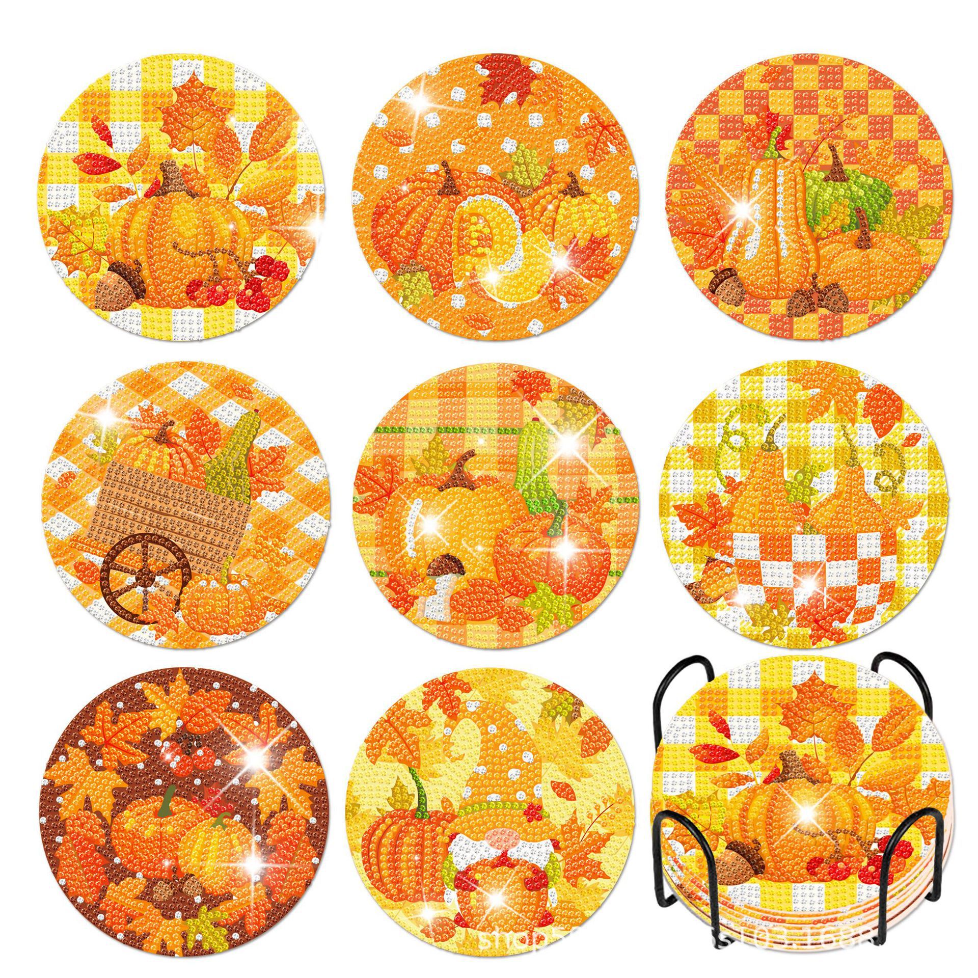 Th009秋のカボチャのカエデの葉のダイヤモンドはアクリルのコルクの底の食事のマットのダイヤモンドを描いてdiyの手作りのダイヤモンドを貼ります。
