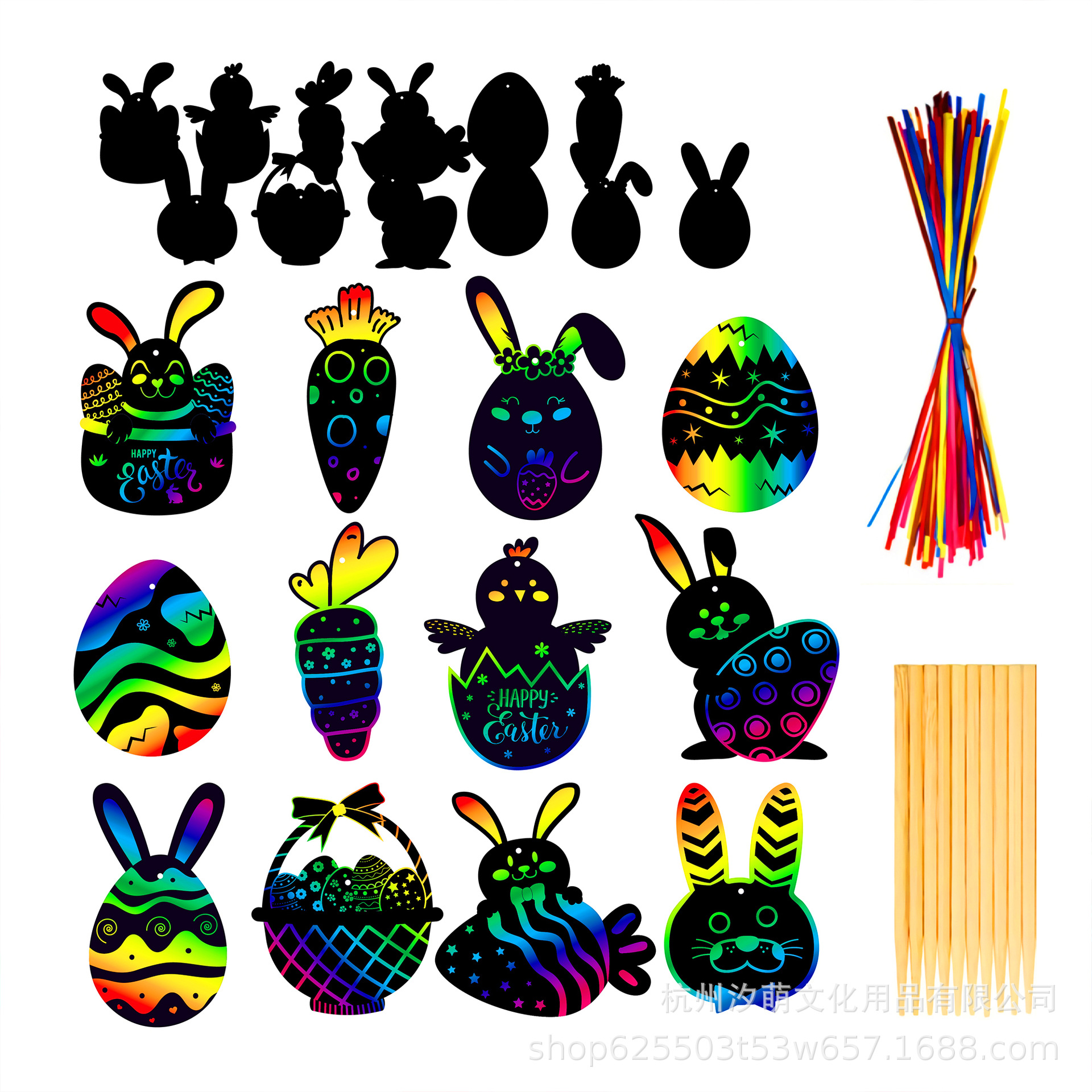 GH001 12種類のイースター子供diyブックマークのカラフルなスクラッチ紙クリスマスハロウィーンスクラッチ絵アマ