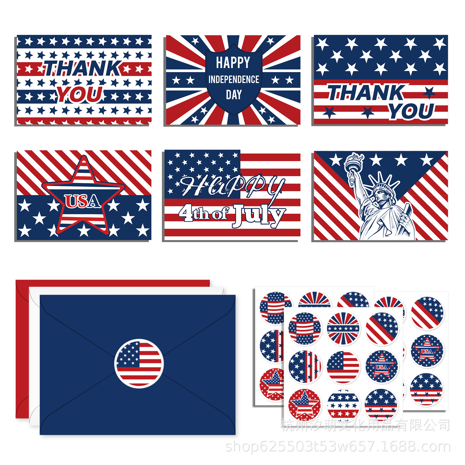 HK028アメリカ国慶節July 4th招待状グリーティングカード漫画グリーティングカード封筒セット