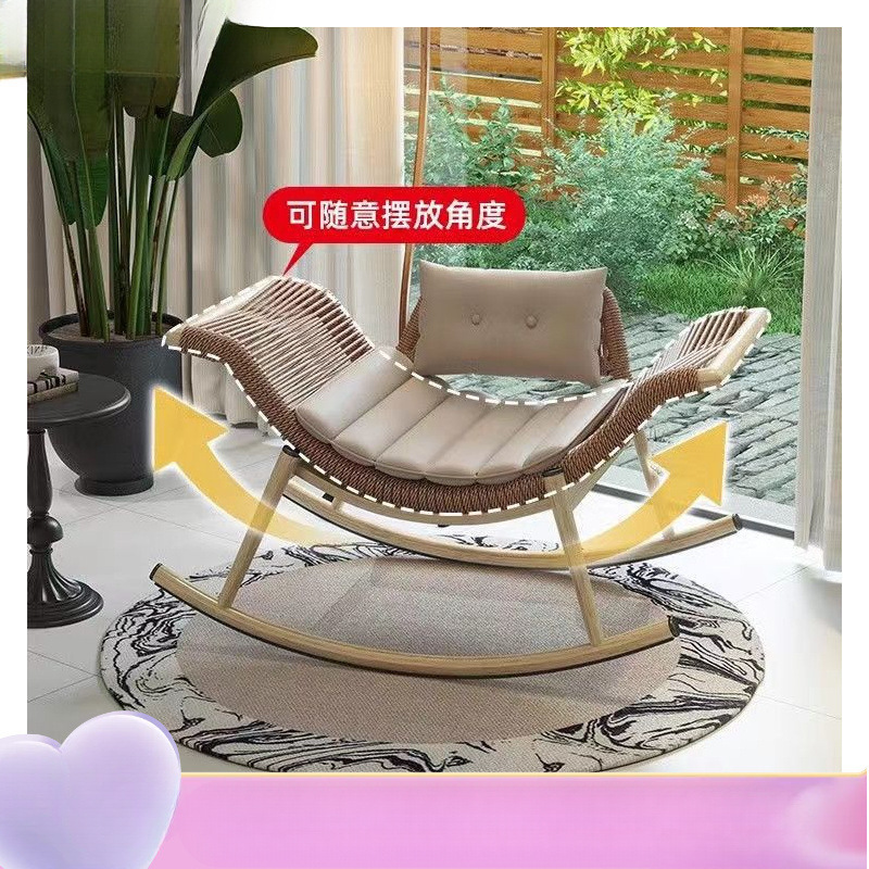 ロッキングチェア2025新型ベランダカジュアル籐編み椅子庭怠け者ロッキングチェア家庭用アウトドアシングル籐リクライニングチェア