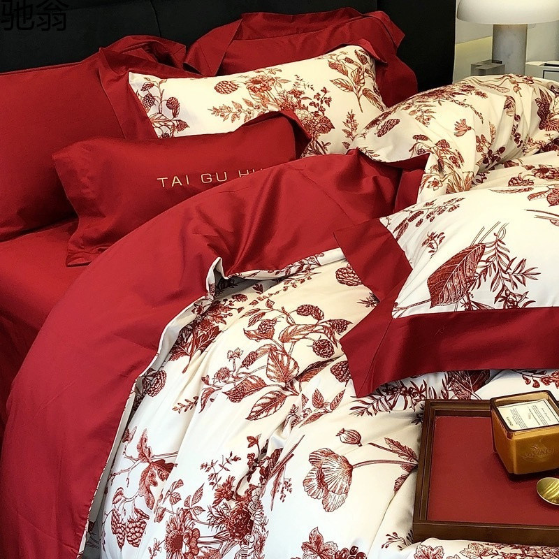 ウェディング 100番手綿 シンプルレッド ウェディング寝具 100番手長綿 4点セット ウェディング ウェディング 新婚祝い