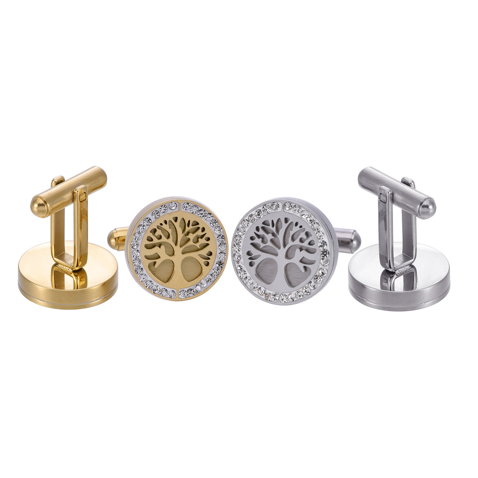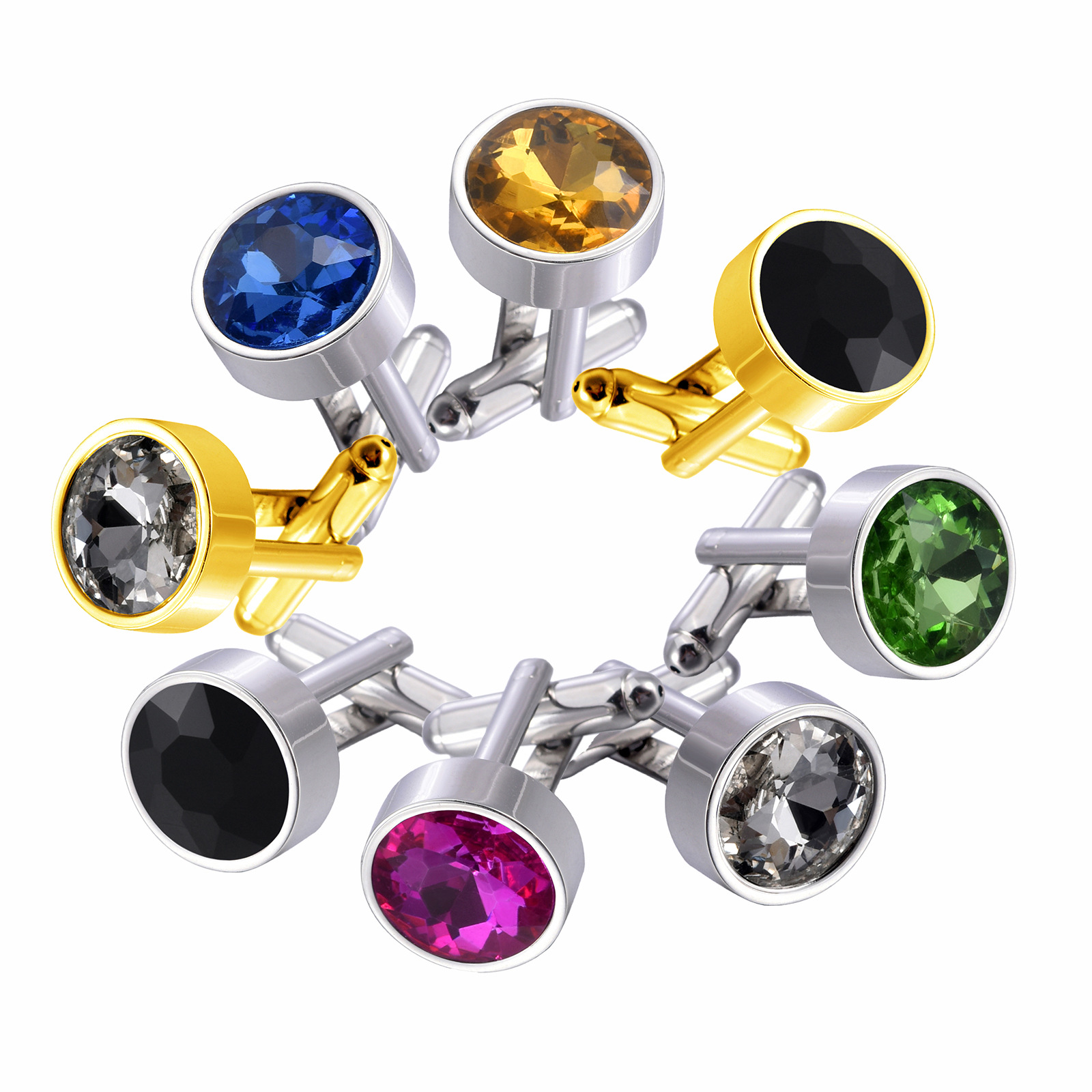新型男性円形ステンレス水晶樹フレンチカフススーツシャツ軽贅沢メッキ真金カフスカフス