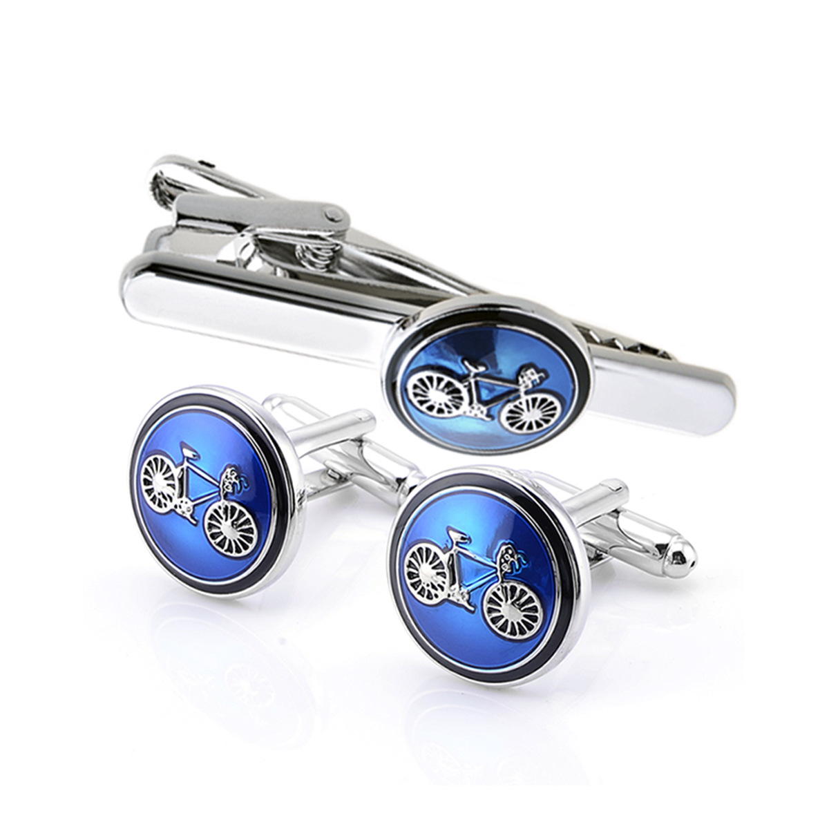 ラウンド2d自転車カフスネクタイクリップセット高級スーツブルーブラックエナメルフレンチカフスシャツネクタイバックル