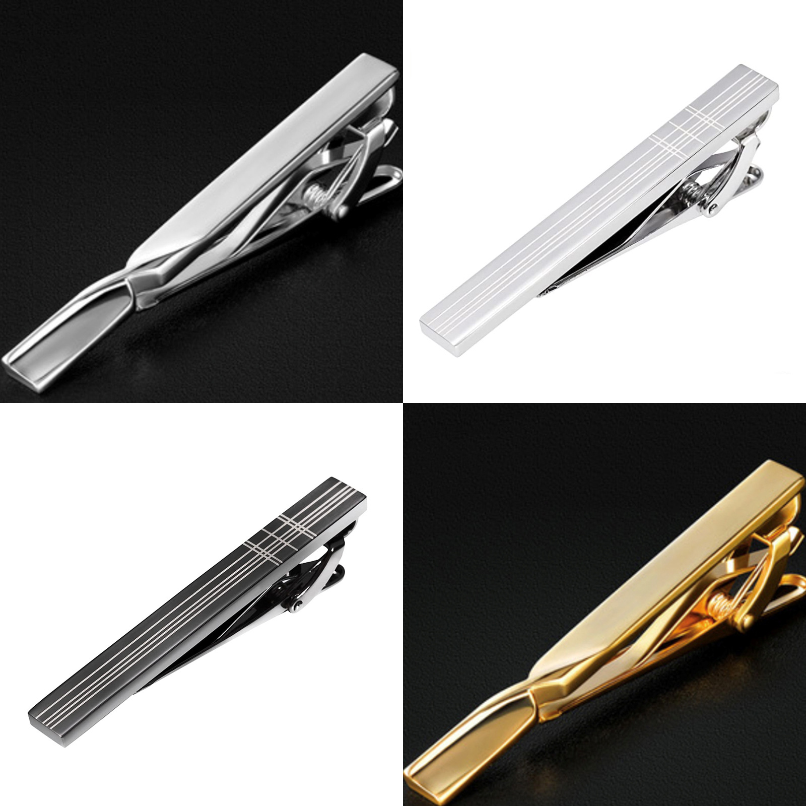 東莞の上質な漆の金色のネクタイは男性のビジネススーツを挟んで金属の密紋の黒色の襟を飾って小さい贈り物を挟みます。
