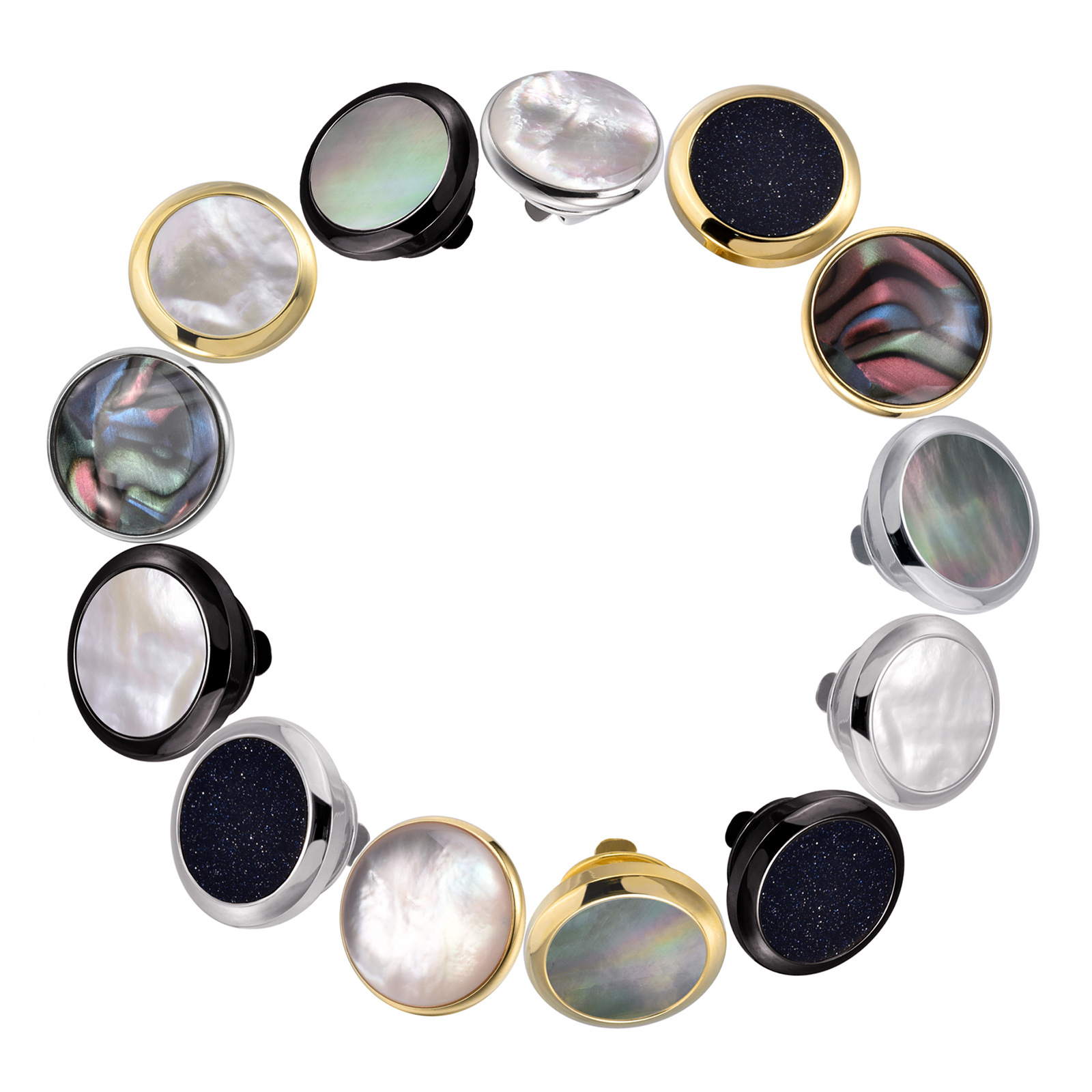 男性の高級な丸い貝のお母さんのフレンチカフスの高級なアワビの貝は2色の袖のボタンのカフスのクロスボーダーの商品の供給源をつなぎ合わせます。