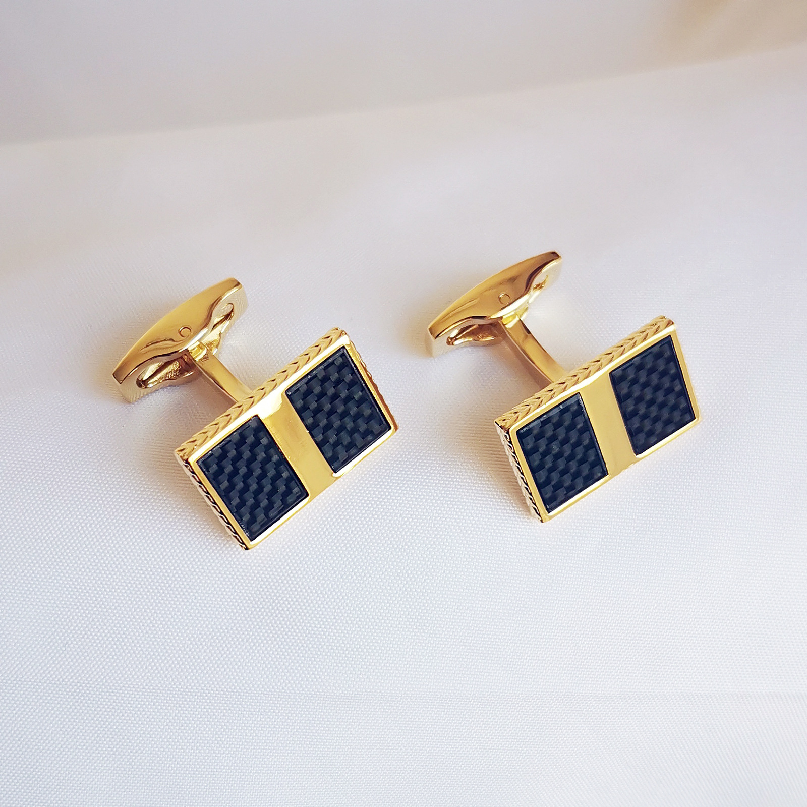 東莞高級炭素繊維フランス男性金色カフススーツ袖口装飾金色カフスシャツ取付ボタン