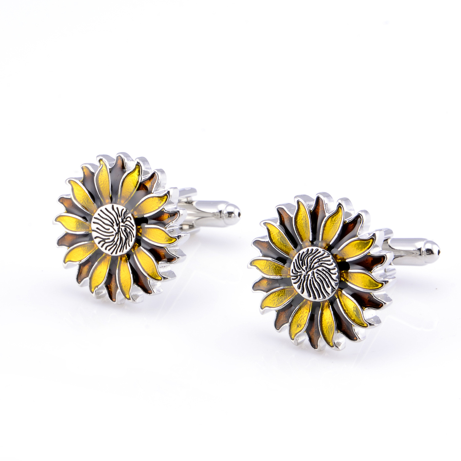 東莞の高品質の明るい太陽の花の袖はゴムの彩色のヒマワリの袖のボタンの高級なシャツのフランスの袖の釘を掛けます。