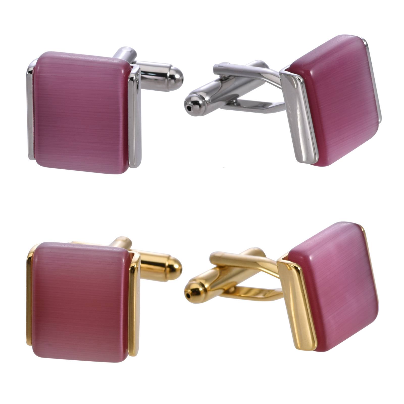清新なピンクの猫の目の石のカフスは男女のスーツのシャツの高級なフランスの袖の釘の四角形の宝石の袖のボタンのクロスボーダーを掛けます。