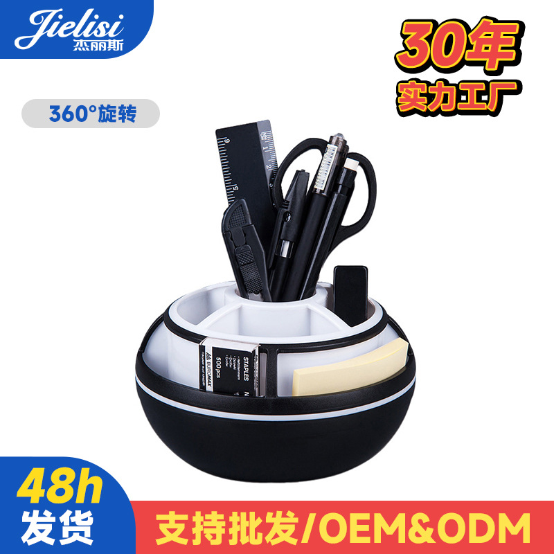 ジェリスデスクトップ収納円形筆筒クリエイティブ九格自由360度回転筆筒白黒配色