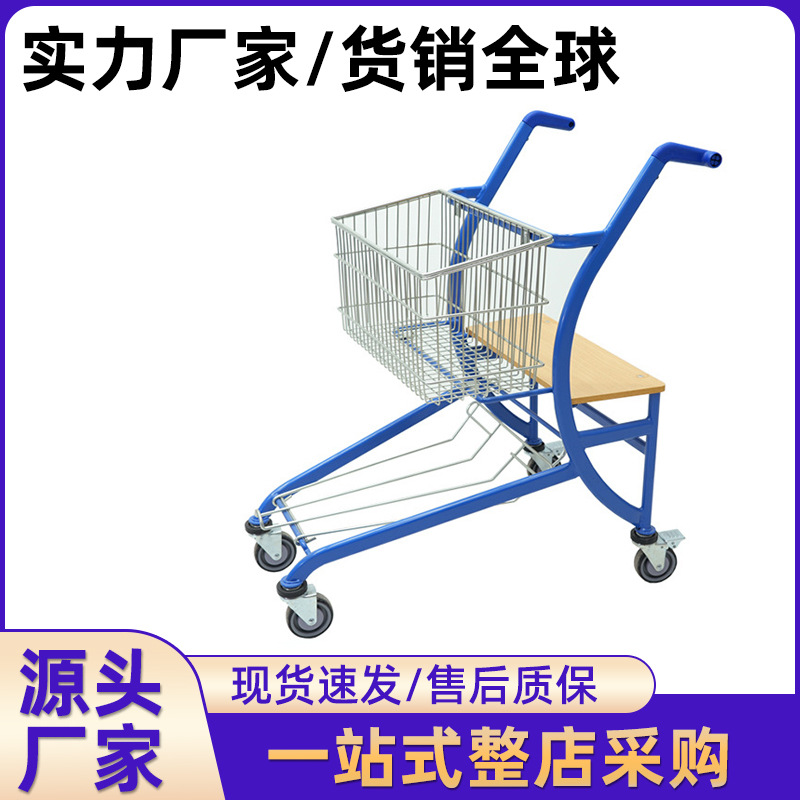 スーパーマーケットの高齢者はショッピングカートに座って買い物を便利にできますコンビニエンストロリー金属製のショッピングカート