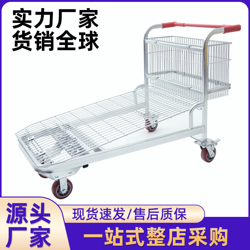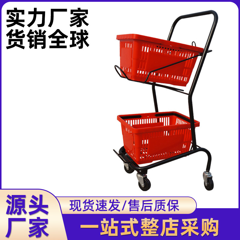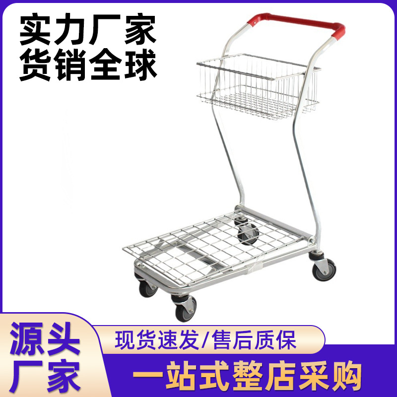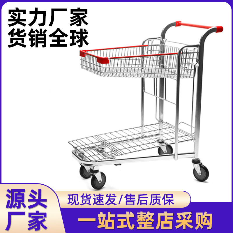 メーカー直販スーパーショッピングカートデパート手押し車果物ショッピングカート買い物車二重スーパートラック