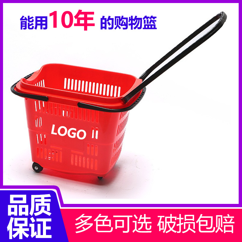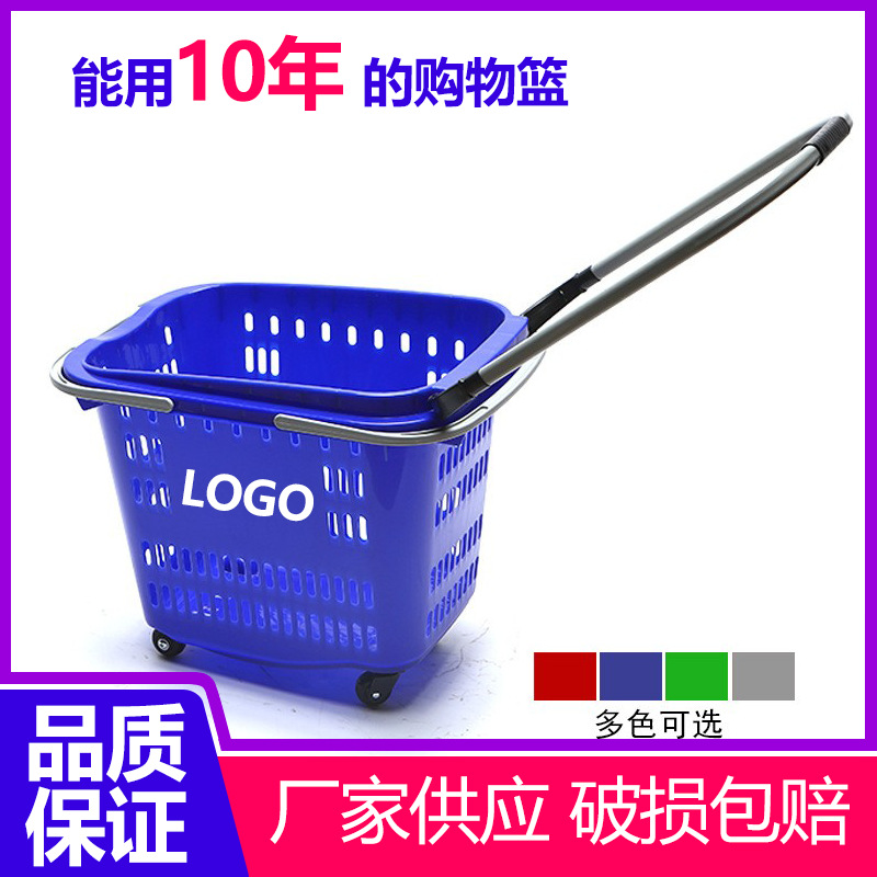 QY-4スーパーレバー式買い物かごプラスチック二輪手提げかごコンビニ子プーリー買い物かご35l