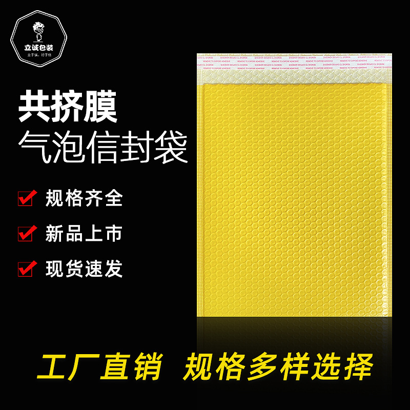 現物卸売りの黄色の共押出膜の気泡袋の泡は厚い包装の服装の包装の材料を厚くします。