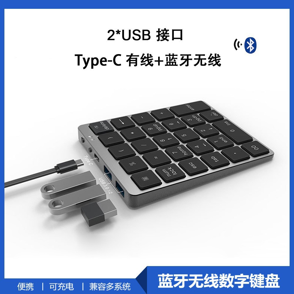 N970 pro有線bluetoothデュアルモード28キー充電可能usb hubインターフェースデジタルキーボード付きオフィス専用