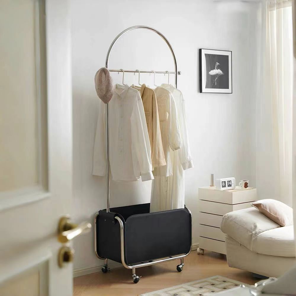 フレンチライト高級レザーポケットコートラック床置きステンレススチールホームベッドルームベッドサイド取り外し可能な中世の収納オーバーナイト