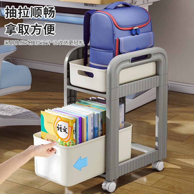 かばんの物置棚が着地したカートの物置棚机の本の収納棚の神器の机の下の学生は本棚を移動します。