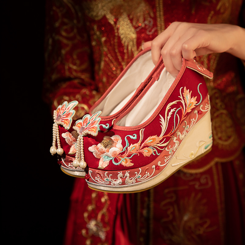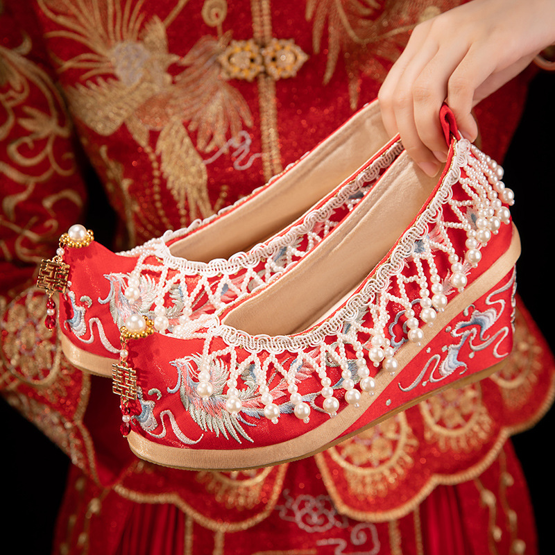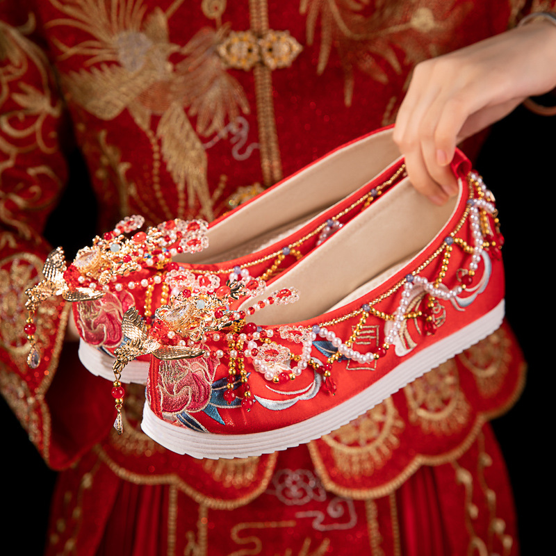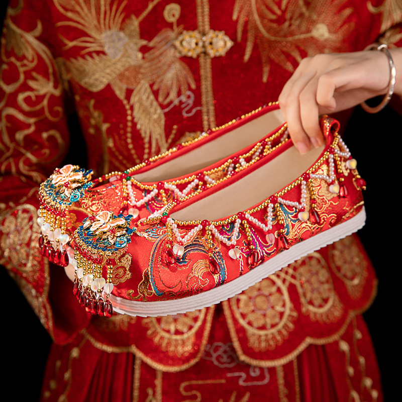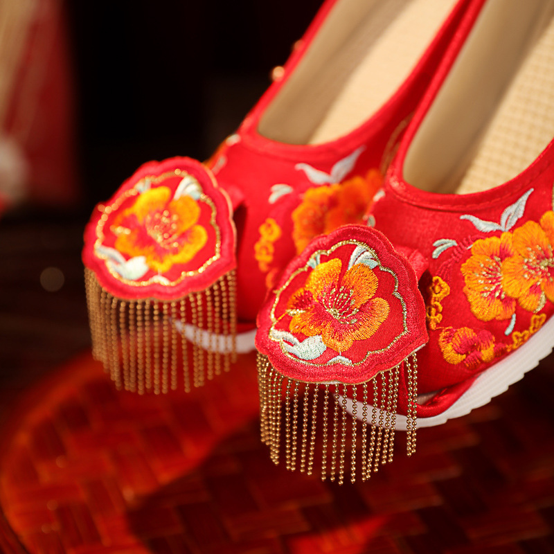 今世の良縁2024夏秋の新型中国式花嫁結婚流蘇手作り古風刺繍靴秀禾漢服靴