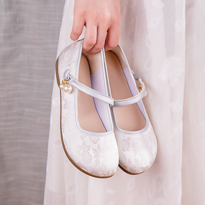 怡淑2024秋の新型メアリー珍平底新中国式国風婦人靴快適軟底浅口真珠単靴
