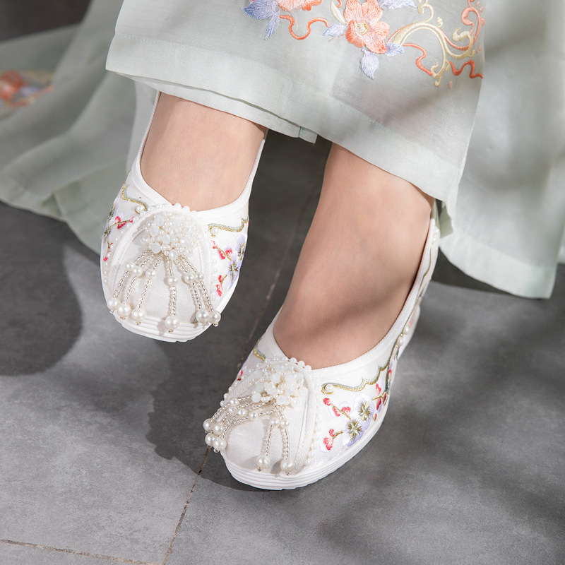花喵坂と2024春の新しい時代服の首を長くして靴の中で真珠の古風の刺繍の靴を高く上げます。