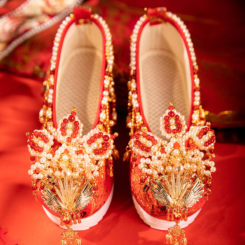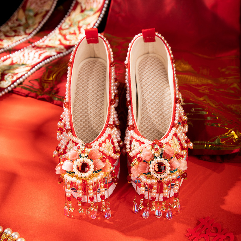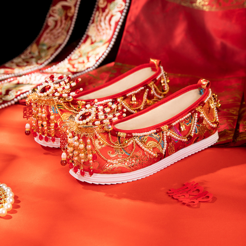 景星慶雲2024春の新型中国式秀禾結婚靴新婦結婚式と秀禾服漢服靴刺繍靴