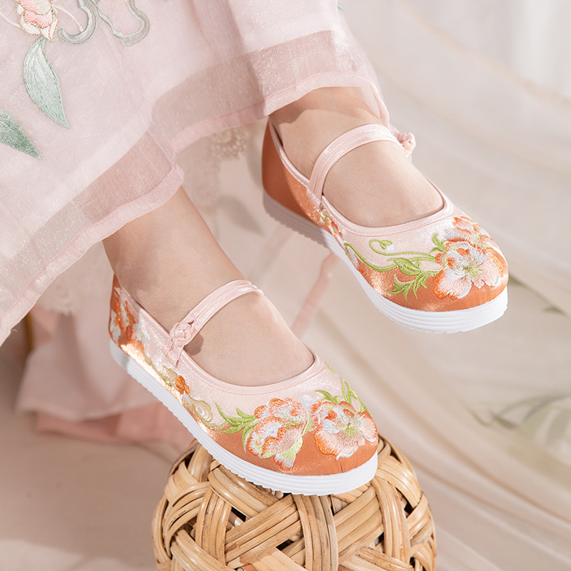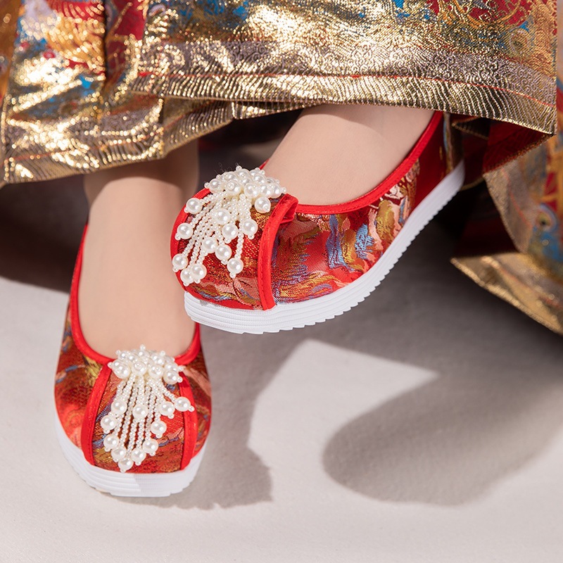 ● 月2024春の新型中国風刺繍古い北京児童布靴時代刺繍靴公演漢服靴