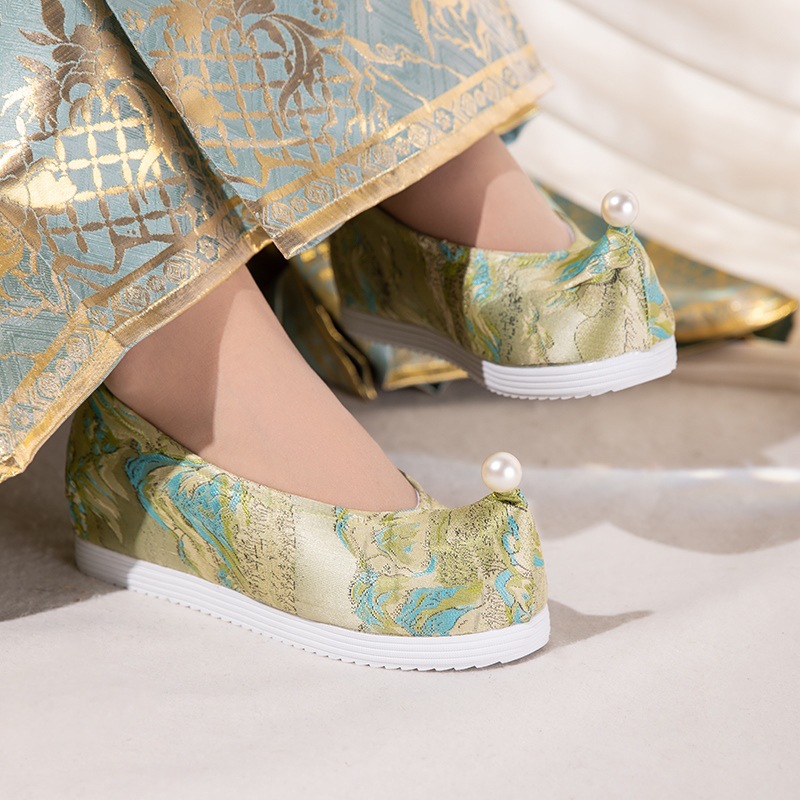 江山如画珠花2024春新作雲頭珠花古風織錦サテン暗紋刺繍品第漢服靴
