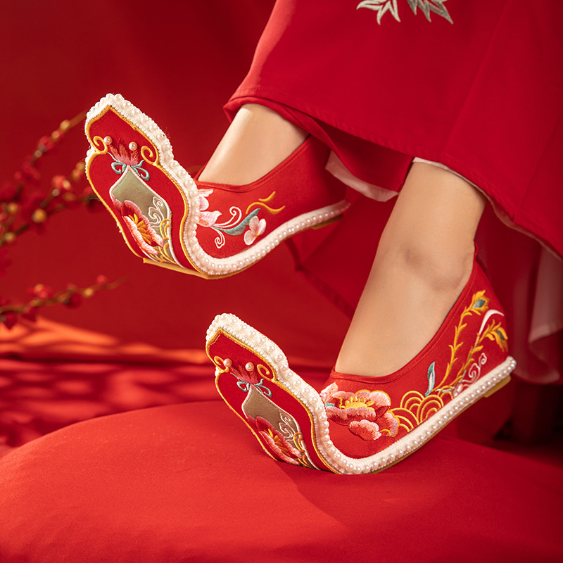 両心相許単2025春夏新作手作り高級感重工花嫁結婚靴中国式秀禾結婚靴