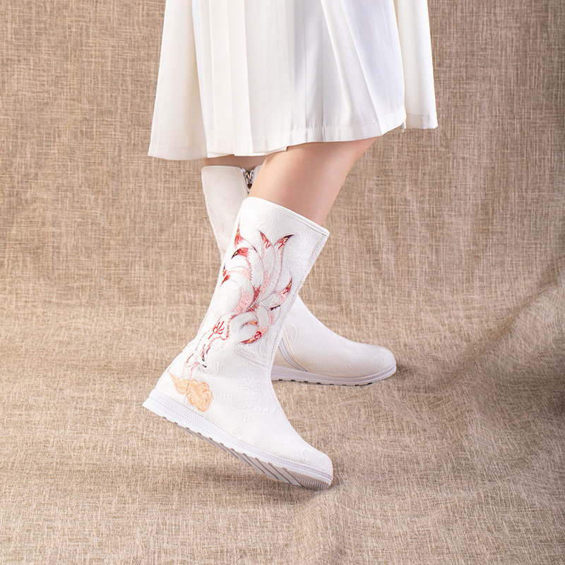 九尾単靴新型古い北京布女靴民族風ファスナー漢服中筒靴ゴム底ブーツ