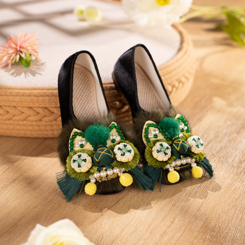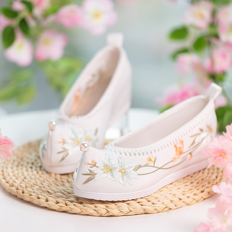 青顔2023春夏新作通気性快適古風漢服靴内増刺繍真珠民族風刺繍靴女