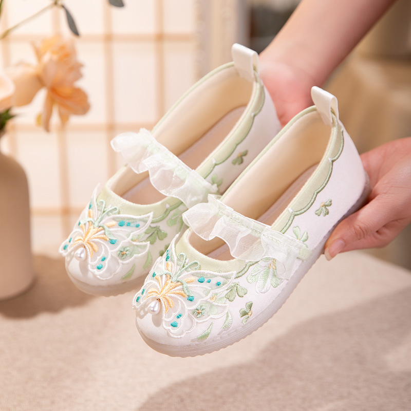 蝶香単2025春夏漢服刺繍靴少女古風手作り児童ダンス靴中国風時代刺繍